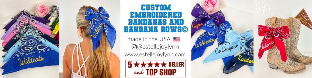 SIGNATURE ORIGINAL CUSTOM EMBROIDERED BANDANA BOWS© 🎀🎀🎀
