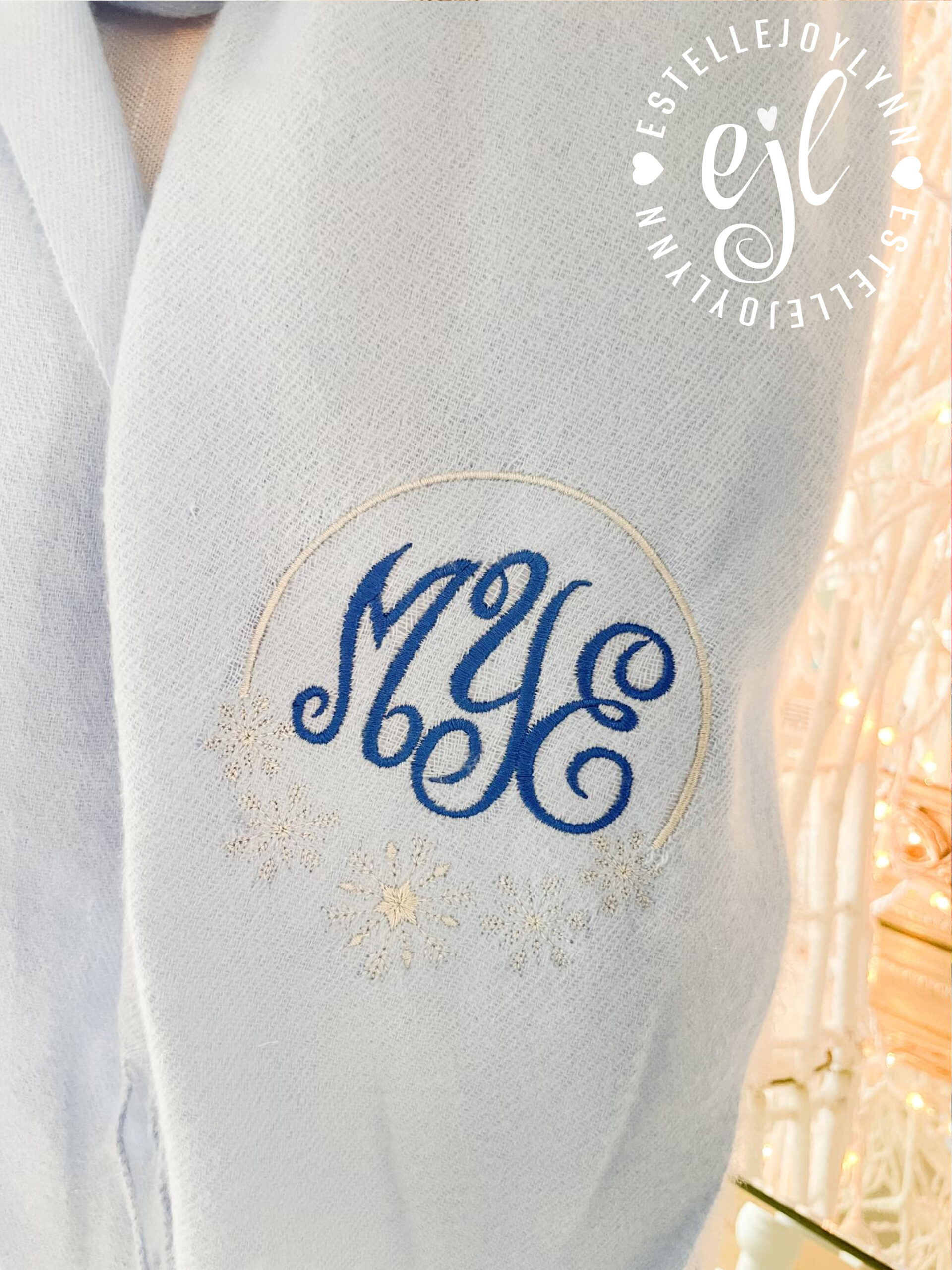 Embroidered Monogram Light Blue Soft Cozy Winter Scarf