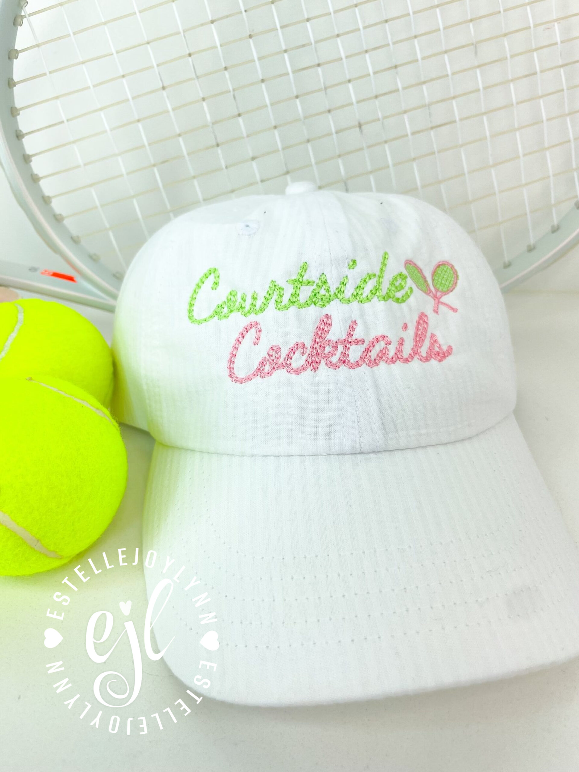 Tennis Courtside Cocktails Seersucker Embroidered Hat / Embroidery White Ball Cap / Tennis / Sports, Tennis Hat /